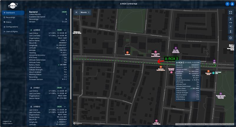 The A-ROX system is built on a new modular hardware platform, delivering improved processing capabilities and upgraded interfaces. The system can be configured with single, dual or triple GNSS antenna (s). The processing unit is part of the A-ROX system. A powerful configuration and visualization software is implemented as a web app, easily accessible from different kinds of devices, including laptops and tablets. It is directly hosted on the system with no need for installation of software on your device. On top of the local app, a cloud-based fleet management feature is available for controlling all you’re aROX devices and accessing all sensor data from anywhere.