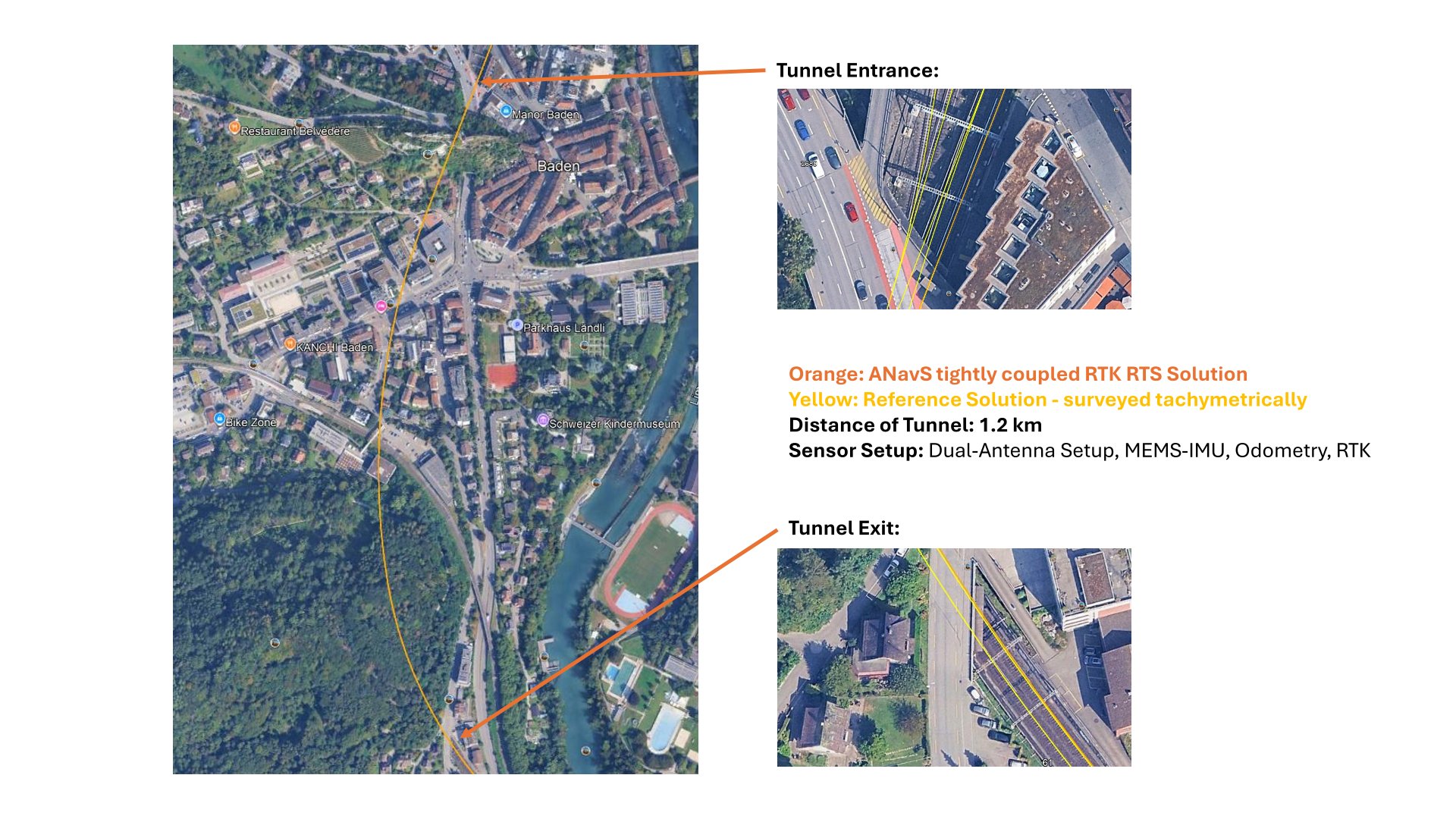 The left image illustrates the trajectory through a 1.2 km long tunnel (location: Baden, Switzerland):