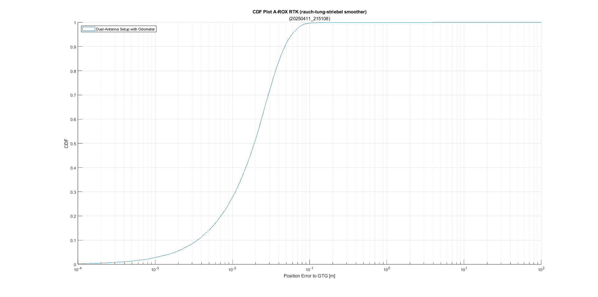 The right diagram shows the position error statistics (CDF). The results confirm that our tightly coupled fusion ensures very high accuracy ground truth and maintains solution integrity even during temporary GNSS outages.