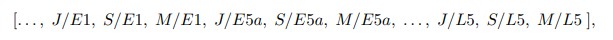 where the constellations are sorted alphabetically as Beidou, Galileo, Glonass, and GPS signals. Each element is a binary indicator that specifies whether a given carrier is affected by a particular interference type. For example, if spoofing occurs on Galileo E1, the element S/E1 is set to 1, while all other entries remain 0. Formally, the j-th element of the label vector for sample i is defined as